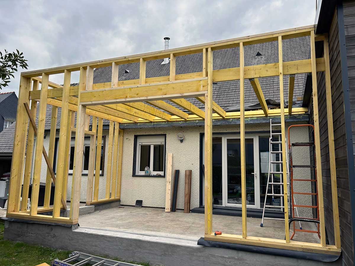 Construction d’une extension bois à Pont-Scorff – étapes du chantier.